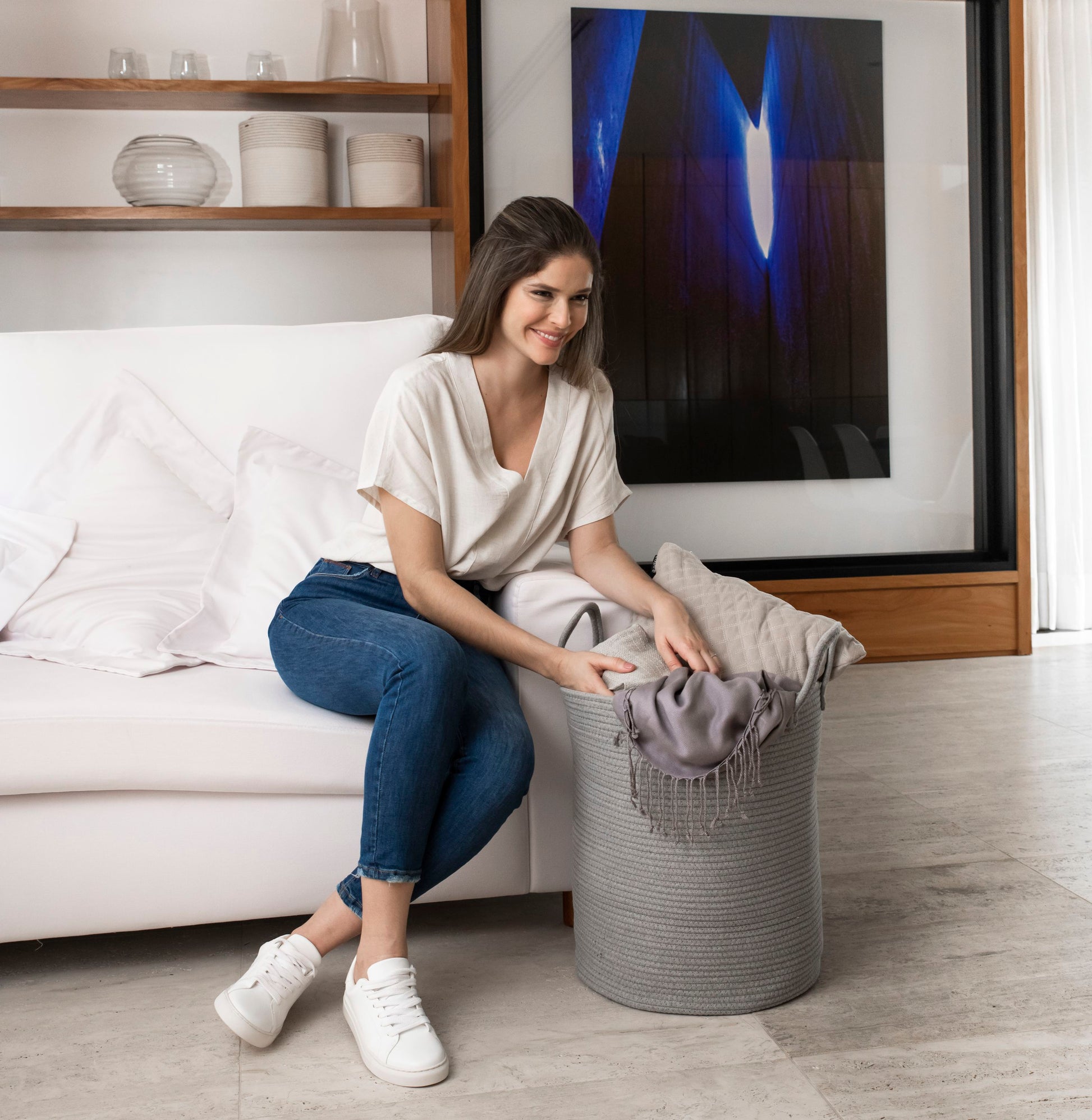 ⭐️ LOVELY PLAIN COLORS that have a pure, natural vibe and beautiful look. They go well in any room in your home. The Off White and Gray are big favorites for our customers. Chose from two popular sizes. Many people buy both to fully outfit their living room, laundry, and bedroom. 100% natural hand woven basket you won't want to be without.