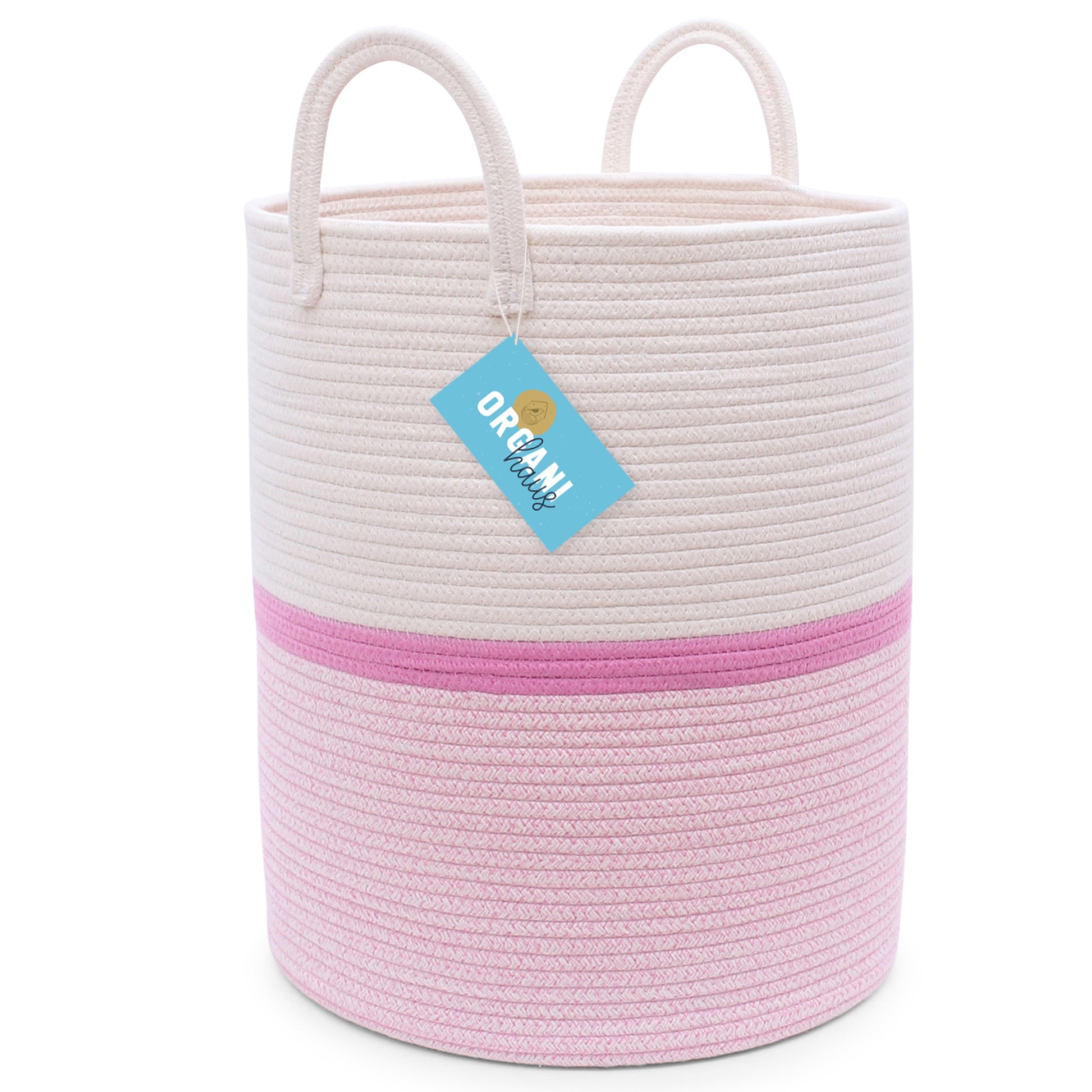 ⭐️ CUTE LARGE ROPE BASKET woven to perfection with natural cotton rope. Big oversized handles. These are beautiful baskets that look impressive in any room of your home or business. We offer these in two favorite sizes 20" x 13" and 15" x 18". Available in Gray, Blue, and Pink for adults, boys, and girls.