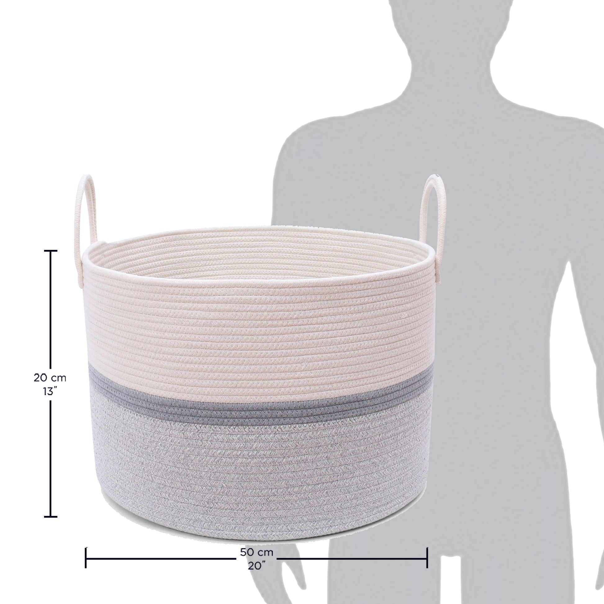 ⭐️ CUTE LARGE ROPE BASKET woven to perfection with natural cotton rope. Big oversized handles. These are beautiful baskets that look impressive in any room of your home or business. We offer these in two favorite sizes 20" x 13" and 15" x 18". Available in Gray, Blue, and Pink for adults, boys, and girls.