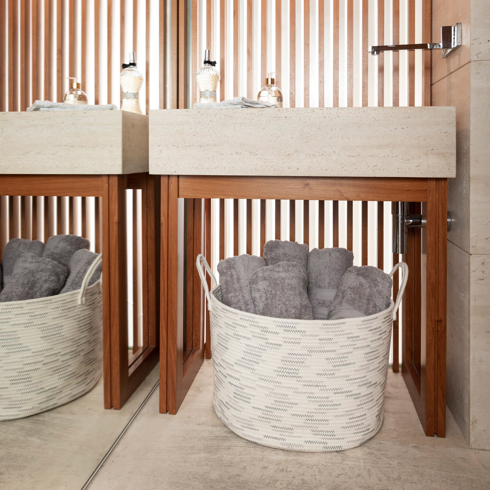 Cotton Rope Storage Basket - White w/Gray Stitches - Wide