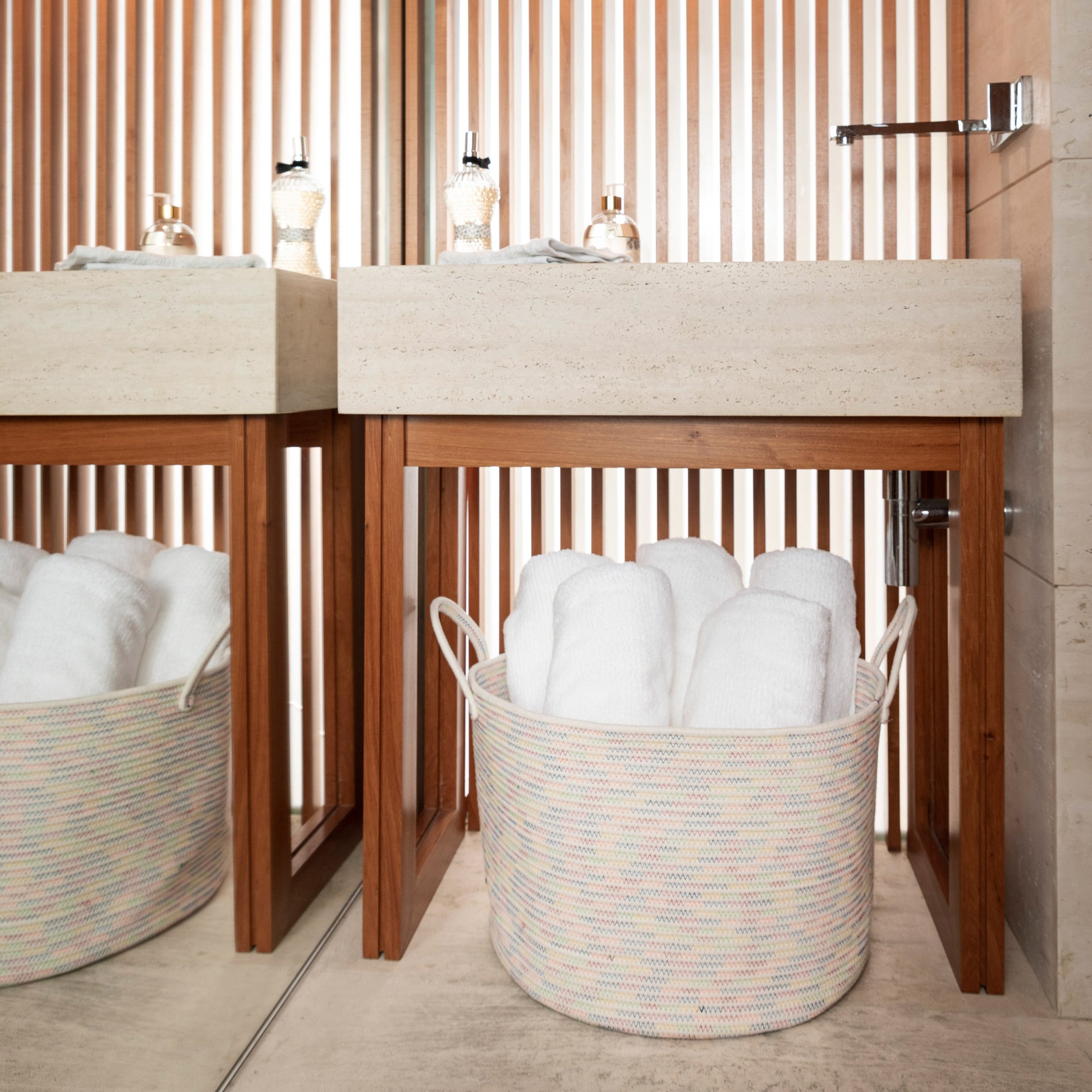 Cotton Rope Storage Basket - Off-White w/Rainbow Stitches - Wide
