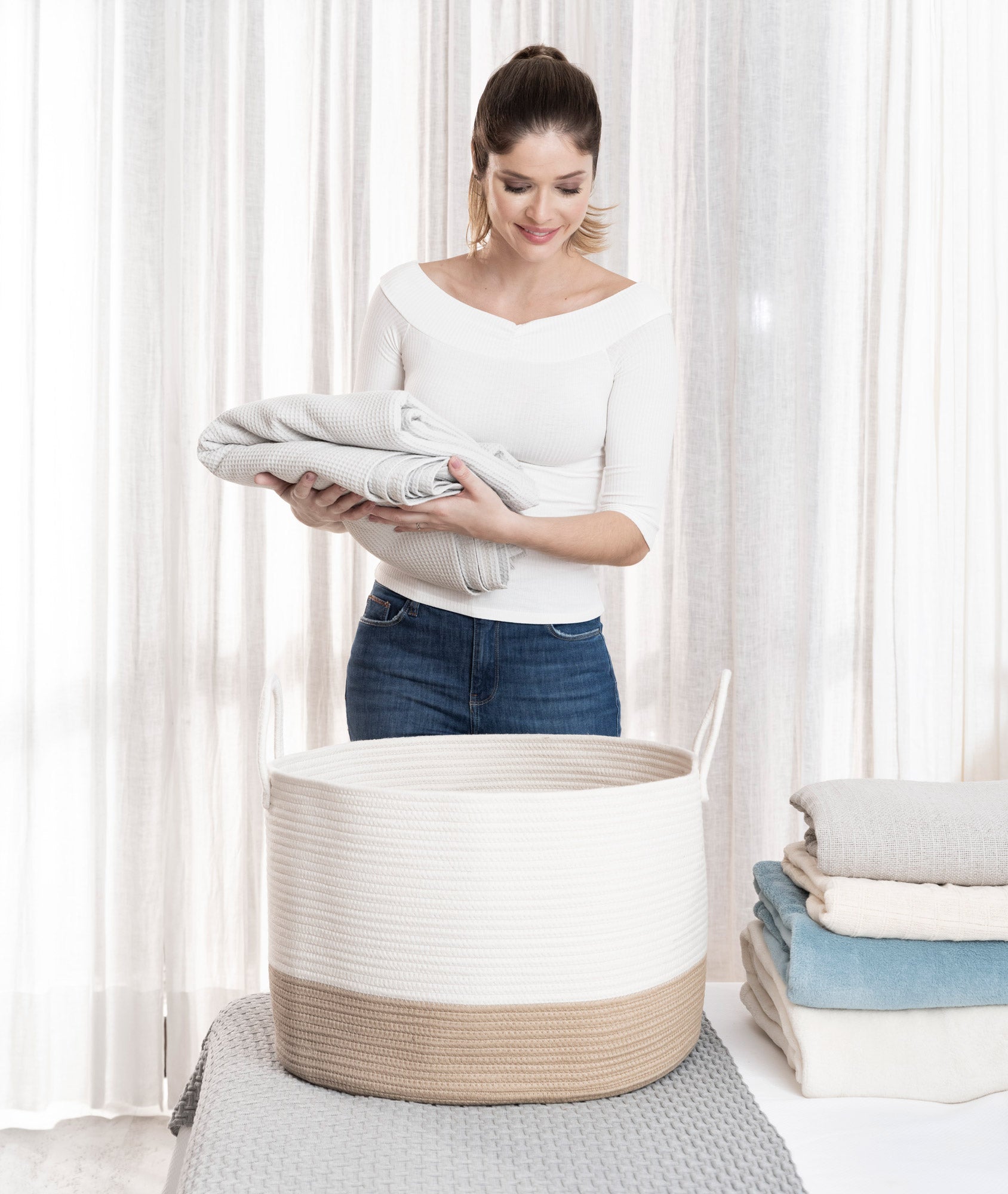 ⭐️ DURABLE AND LONG LASTING to give you a great laundry storage basket that will last for years of continuous use. Rope will not separate, fray, or fall apart. We use highest grade materials and construction. You can feel and see the impressive difference the moment you receive it.