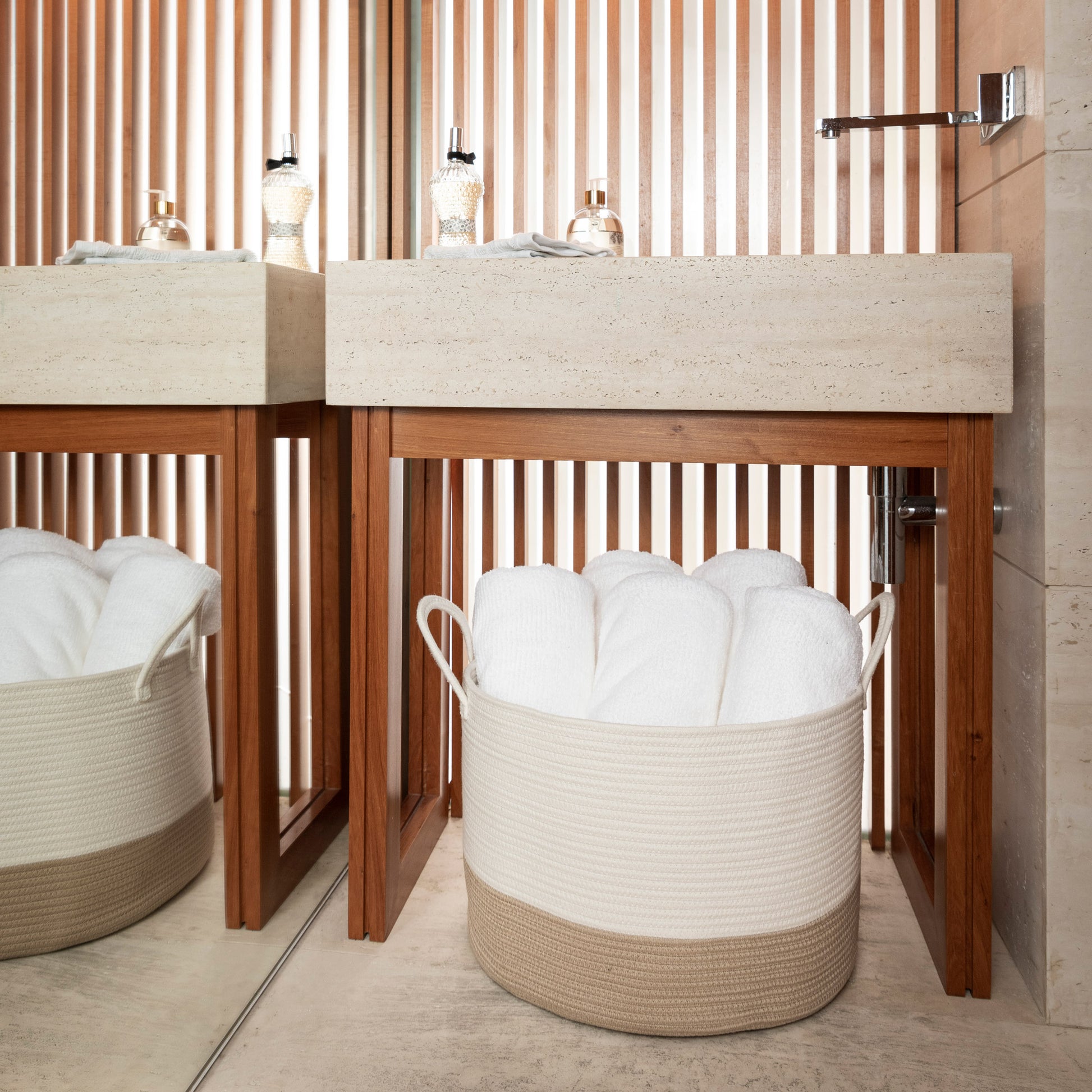 Cotton Rope Storage Basket - Honey & Off-White - Wide