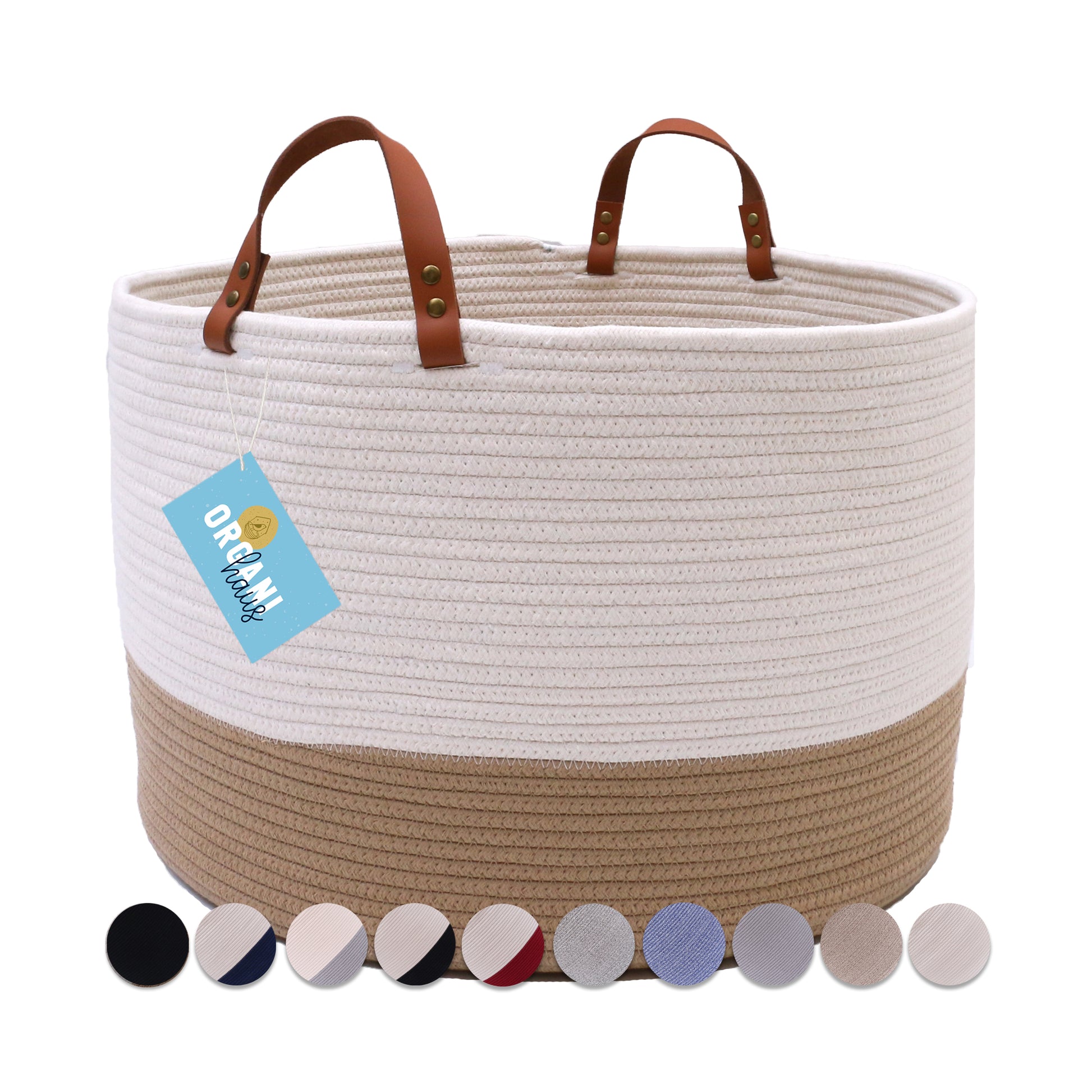 ⭐ FINEST ROPE BASKET AVAILABLE. This Benjamin model has been upgraded with beautiful real leather handles. These aren't faux fake leather like others, but genuine thick real leather. While you can use this for laundry or storage, it's equally beautiful at home in your living room for all to admire.