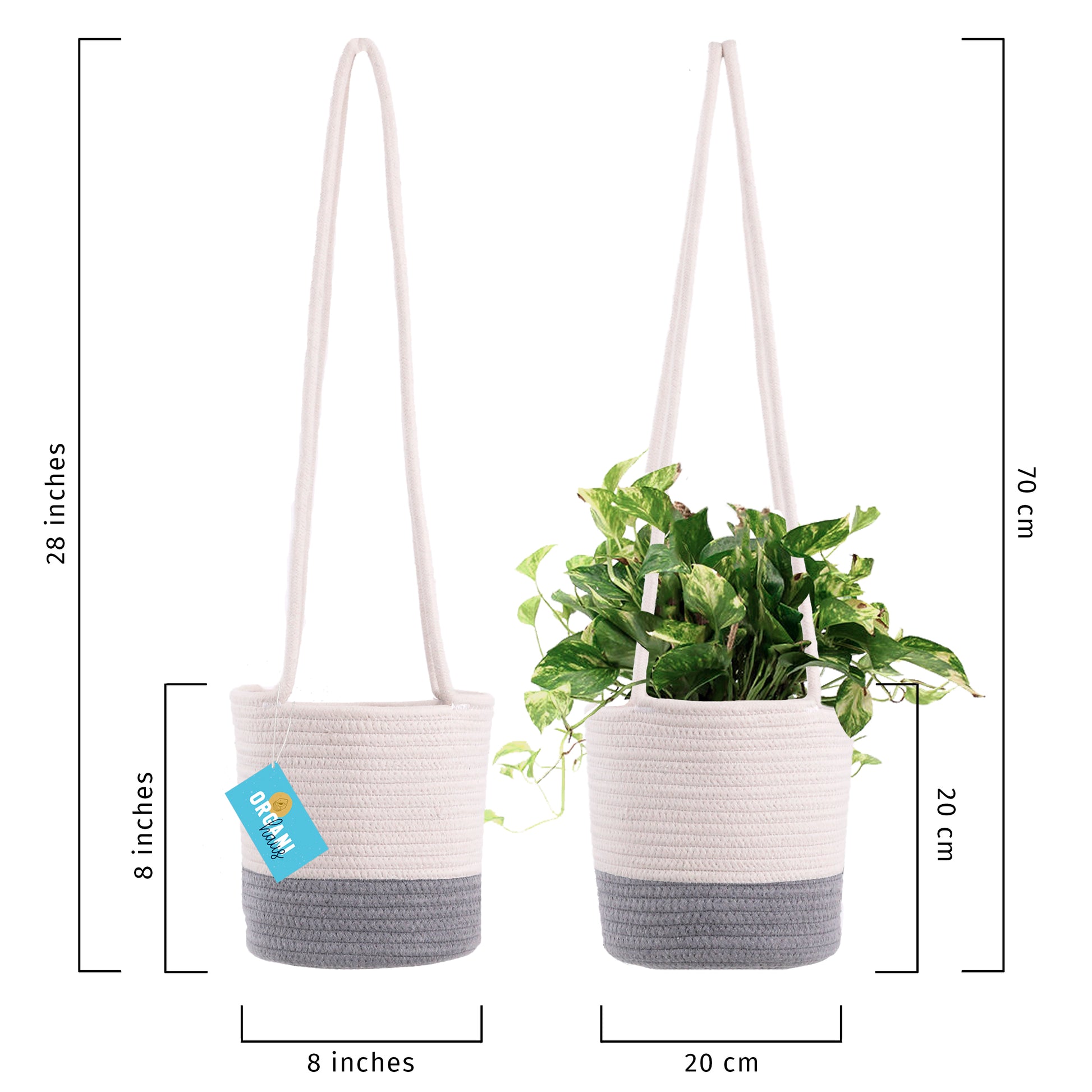 Cotton Rope Hanging Planter Basket - Set of 2 - Gray & Off-White